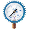Газовый (сварочный) манометр серии ТМ-210 отечественного производства ЗАО «РОСМА» используется для измерения и контроля давления газа в замкнутой системе с максимальной рабочей температурой до 120°C. Его запрещается использовать в работе с агрессивными, вязкими и кристаллизующимися рабочими средами. Применяется в баллонных редукторах и регуляторах. Прибор имеет диаметр корпуса 50 мм, радиальное исполнение (штуцер снизу), класс точности 2,5 и степень защиты IP40. Корпус газового манометра от РОСМА имеет цветовую индикацию в зависимости от измеряемой среды: кислородный (О2) манометр – голубой корпус; ацетиленовый (С2Н2) манометр – серый корпус; пропановый (С3Н8) манометр – красный корпус; манометр для других  газов – черный корпус. Манометр рекомендуется заказывать с защитным кожухом как на фото (это доп. опция).